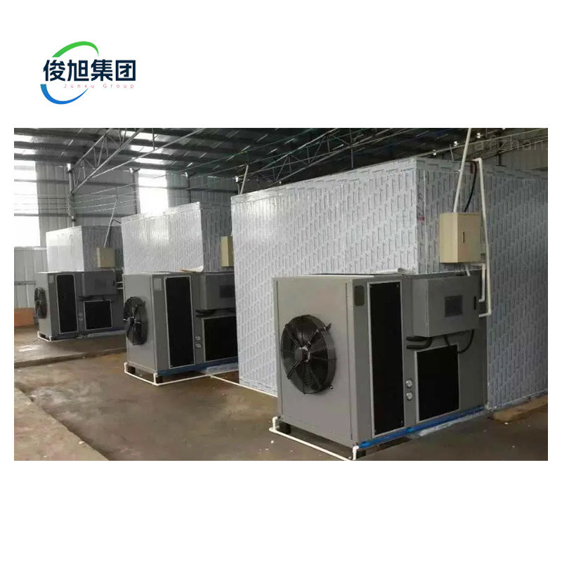 1. Not affected by external factors, no pollution The air dryer drying system places materials in the drying room and realizes the drying process in a * * * * enclosed space. It is not affected by external dust, debris, and air odor, so it will not cause secondary pollution of materials, especially some food materials. The traditional natural air drying method is easily affected by external factors such as weather and air, which can cause pollution to the materials. Fruits such as persimmons, hawthorn, mangoes, Chinese herbal medicines such as goji berries, huaishan, and gastrodia elata, as well as vegetables such as chili peppers, cucumbers, and beans, are prone to dust and secondary pollution due to their long natural drying time. 2. Mild dry environment and good appearance Air dryer drying is more suitable than traditional drying methods because it can achieve accurate temperature and humidity control, thus simulating a drying curve that is more suitable for material drying. This ensures that the color and appearance of the material change little during the drying process, and generally does not cause drying defects such as deformation, cracking, surface hardening, and darkening. The traditional drying method is difficult to control the temperature and humidity, which can affect the appearance of the material. For example, when drying cured meat, the traditional drying method reduces the moisture content of the meat by rapidly increasing the temperature. However, due to the rapid temperature rise, the surface of the cured meat becomes scabbed and hard to dry. Our company's heat pump drying controls the temperature and humidity according to different time periods, resulting in a much better appearance of the dried cured meat. 3. Even drying and high yield rate At present, the traditional drying method mostly adopts a forced discharge method, which has the disadvantage of temperature and humidity differences inside the drying room, resulting in poor uniformity of material drying. This leads to local materials becoming moldy during the drying process, resulting in the occurrence of defective products and affecting the yield rate of the entire batch of materials. Heat pump drying, through scientific and reasonable air duct design, can ensure that the temperature and air volume of various parts in the drying room are basically consistent, thereby ensuring the uniformity of material drying. Drying wood with a heat pump can reduce deformation and cracking, with high utilization rate. The natural drying method is affected by the external environment, and the utilization rate is lower under wind and rain conditions. 4. Controllable temperature and minimal nutrient loss In traditional drying methods, temperature is the most important factor, so most traditional drying equipment only focuses on the temperature that can be raised and ignores the more important issues such as relative humidity and drying surface area in drying. Excessive temperature often leads to the evaporation of beneficial and useful components in the material, resulting in the loss of nutrients. Fruits and vegetables are rich in vitamins and aromatic substances, with strong thermal sensitivity. Using traditional drying methods, high temperatures will cause their aromatic substances, chlorophyll, fruit red and other pigments to be completely lost, resulting in the product losing its color. The air dryer can dry at temperatures close to natural drying, and the evaporation rate of surface moisture of the material is similar to the migration rate of internal moisture to the surface, retaining more of the material's vitamins and having higher nutritional value. High temperature air heat pump dryers are mainly used in agriculture, such as tobacco, tea, cassava, sand, wood, etc; Food: bacon, sausage, seafood, preserved fruit, red dates, edible fungi, sweet potatoes, Rice noodles, etc; Medicinal materials: ginseng, medlar, honeysuckle, momordica grosvenorii, panax notoginseng, etc; Industrial aspects: electroplating, fireworks and firecrackers, straight tubes, leather, Buddha incense, clothing, etc